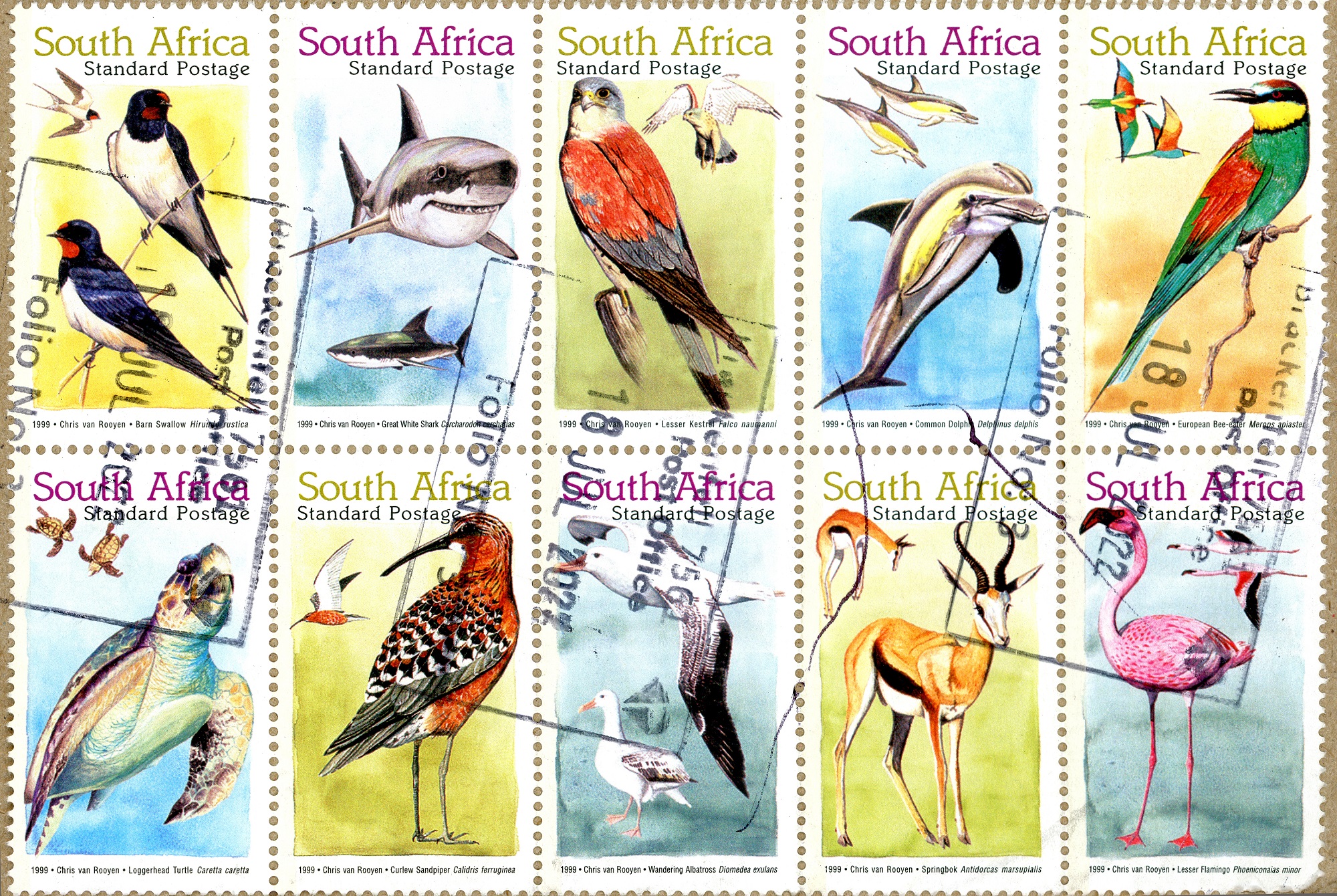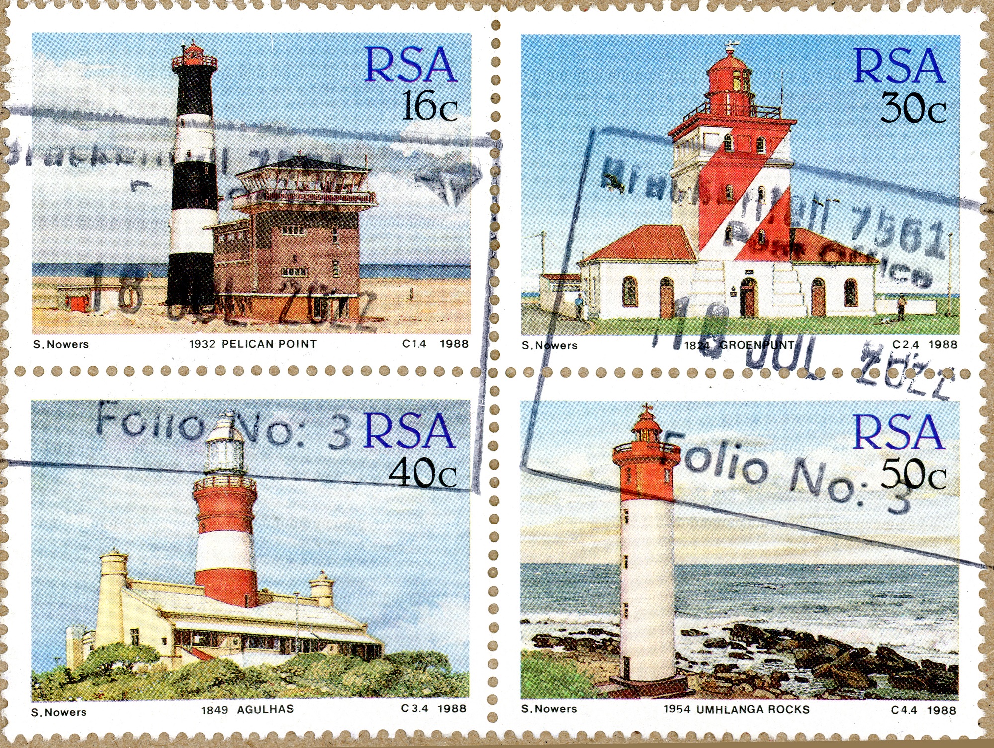 Lighthouses, issued Jun. 9, 1988. These stamps still have explicate postage rate values on (16c, 30c, 40c, 50c), and by 2022 they had lost some 90% of their original postage rate value due to inflation. (I used inflationtool.com to convert 1988 South African Rands to 2022 Rands).Migratory Animals, Issued Oct. 4, 1999. These are marked ‘Standard Postage’ (what we call ‘Forever’ stamps in the USA). So the stamp is valid indefinitely* for postage on a standard envelope. These were a good ‘investment’. Their value increased 3-fold from 1999 to 2022. (ZAR 1.00 in 1999 is equivalent to ZAR 3.31 in 2022, according to inflationtool.com) *Marketing hype, not? Is anything on Earth ‘forever’ or ‘indefinite’?