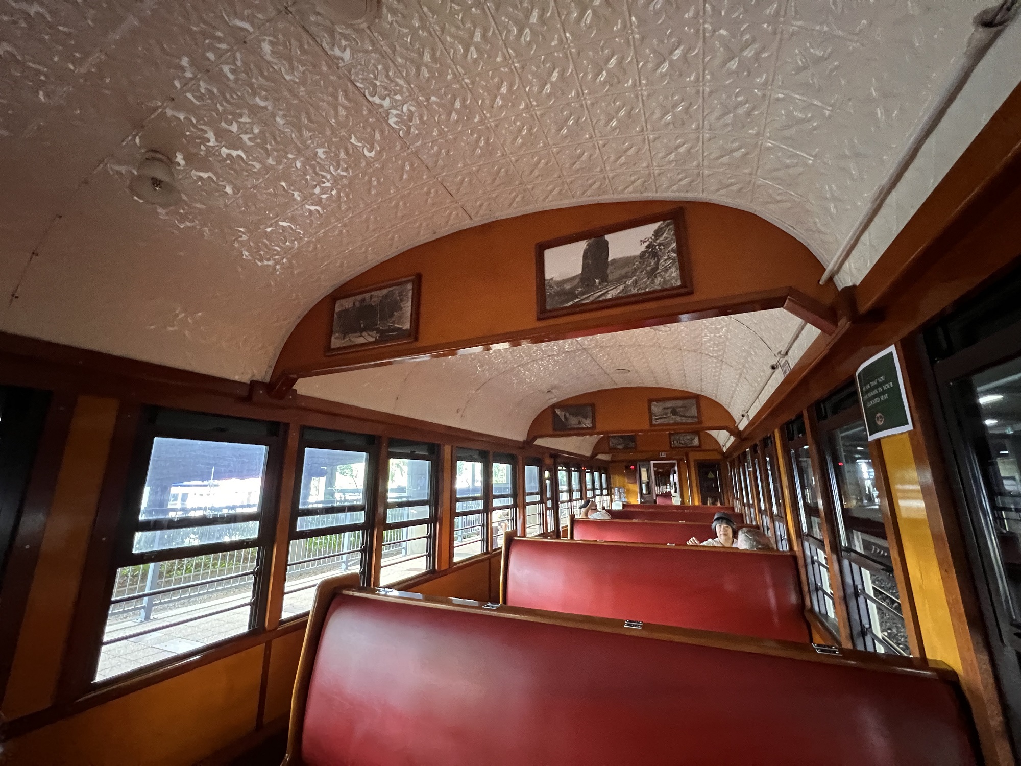 These are the cheap seats (our seats) in what is called a ‘Heritage’ car. The ‘Gold’ cars have lounge-style seating. This car was built in 1944, said a plaque by the door.