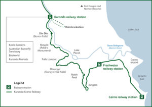 This is Kuranda Station. The village of Kuranda and the tourist attractions (markets, bird world, koala sanctuary) are reached by walking up a few sets of stairs.