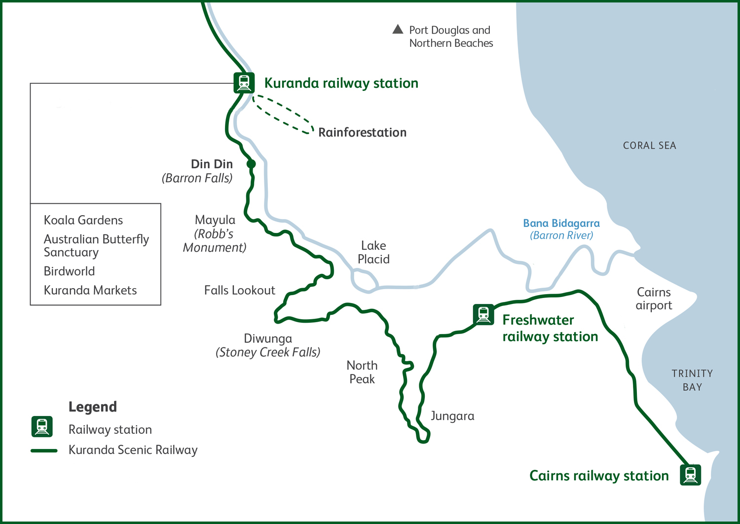 There are 15 tunnels on the way to Kuranda. Construction of the track was completed in 1891. At one point some 1,500 men, of Irish and Italian descent, was at work on the track.