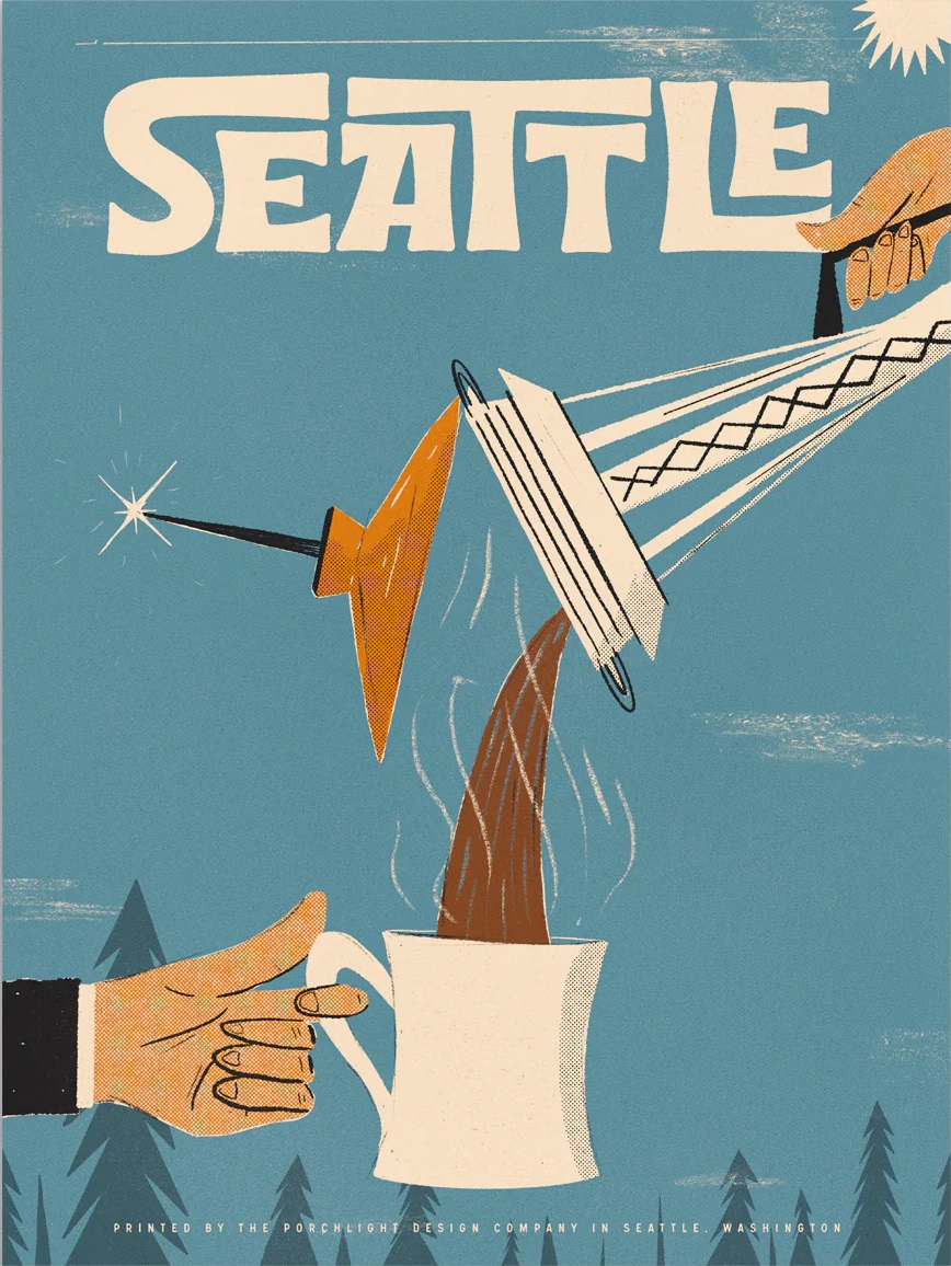 Posted on May 10, 2023 by WillemWednesday/ cheers! 🍻 Three of the amigos had beers at the Elysian Capitol Hill Brewery. On the way there, on 14th Avenue, I saw this vintage poster in a shop window. Vintage Seattle Travel Poster by Porchlight Design Company, available for $18 at porchlightdesignco.com.