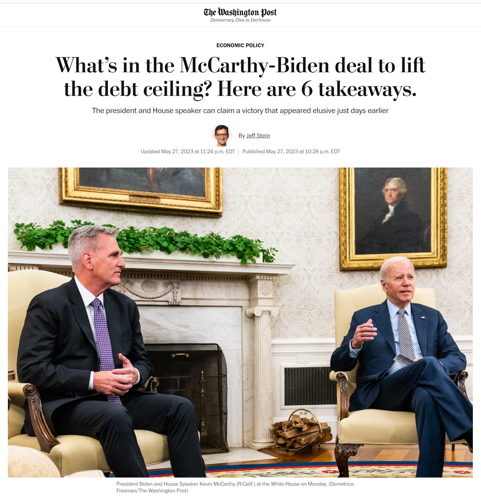 For Biden, one upside of the deal — assuming it passes — is that he will not have to deal with the debt ceiling again until after the next presidential campaign, because the agreement raises the debt ceiling until 2025.