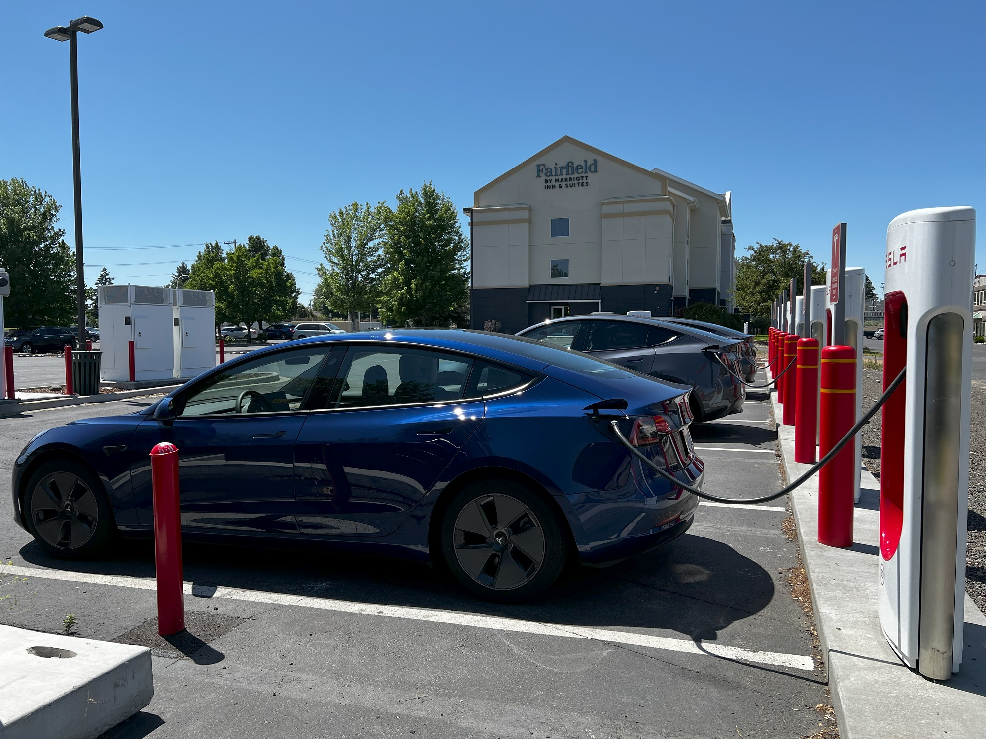 Three amigos in two Teslas drove down to The Dalles in Oregon on Wednesday.