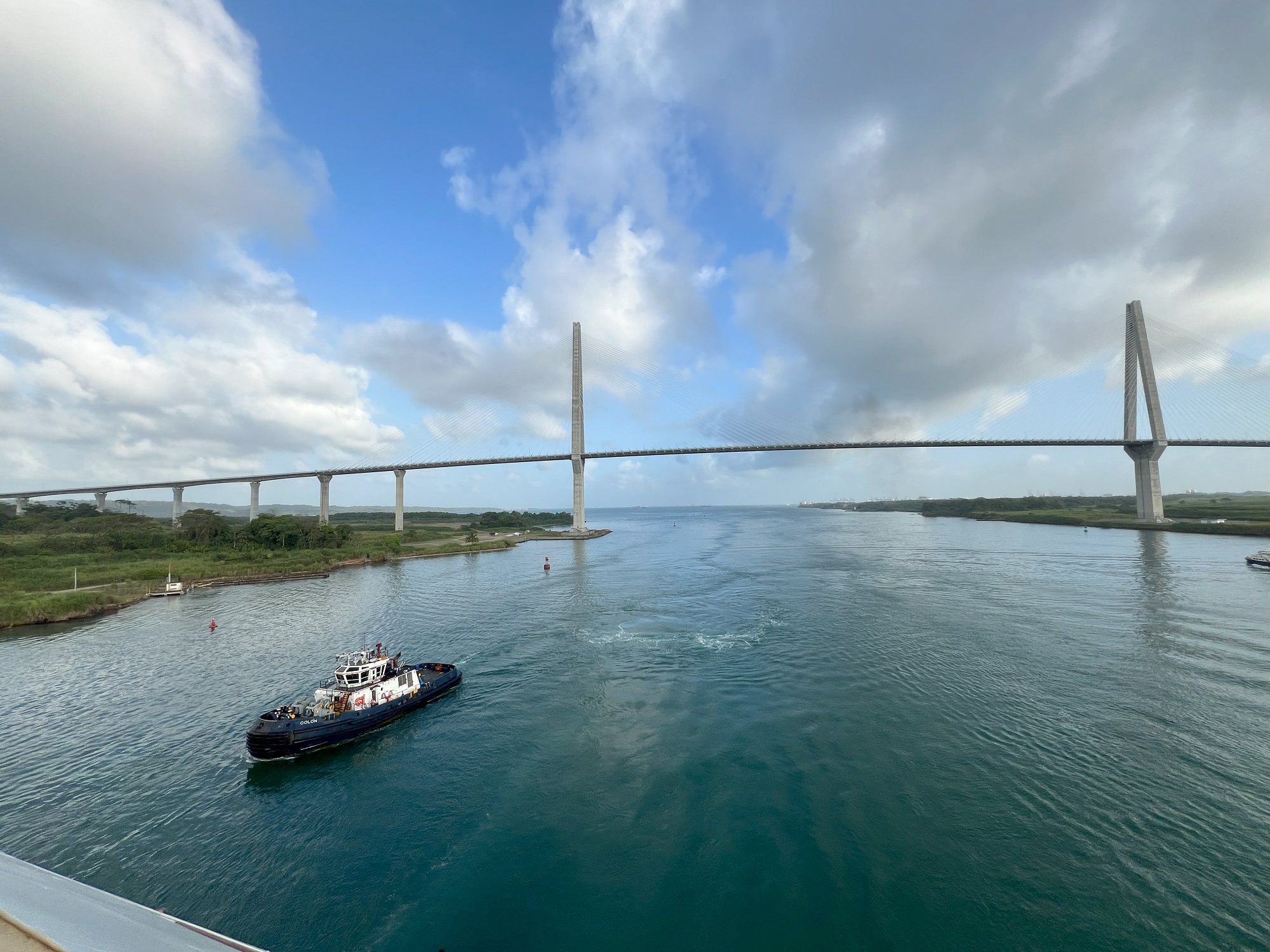After crossing Gatun Lake, we passed under the Centennial Bridge (Puente Centenario). This bridge opened in 2004 and spans 3,451 ft (1,052 m).