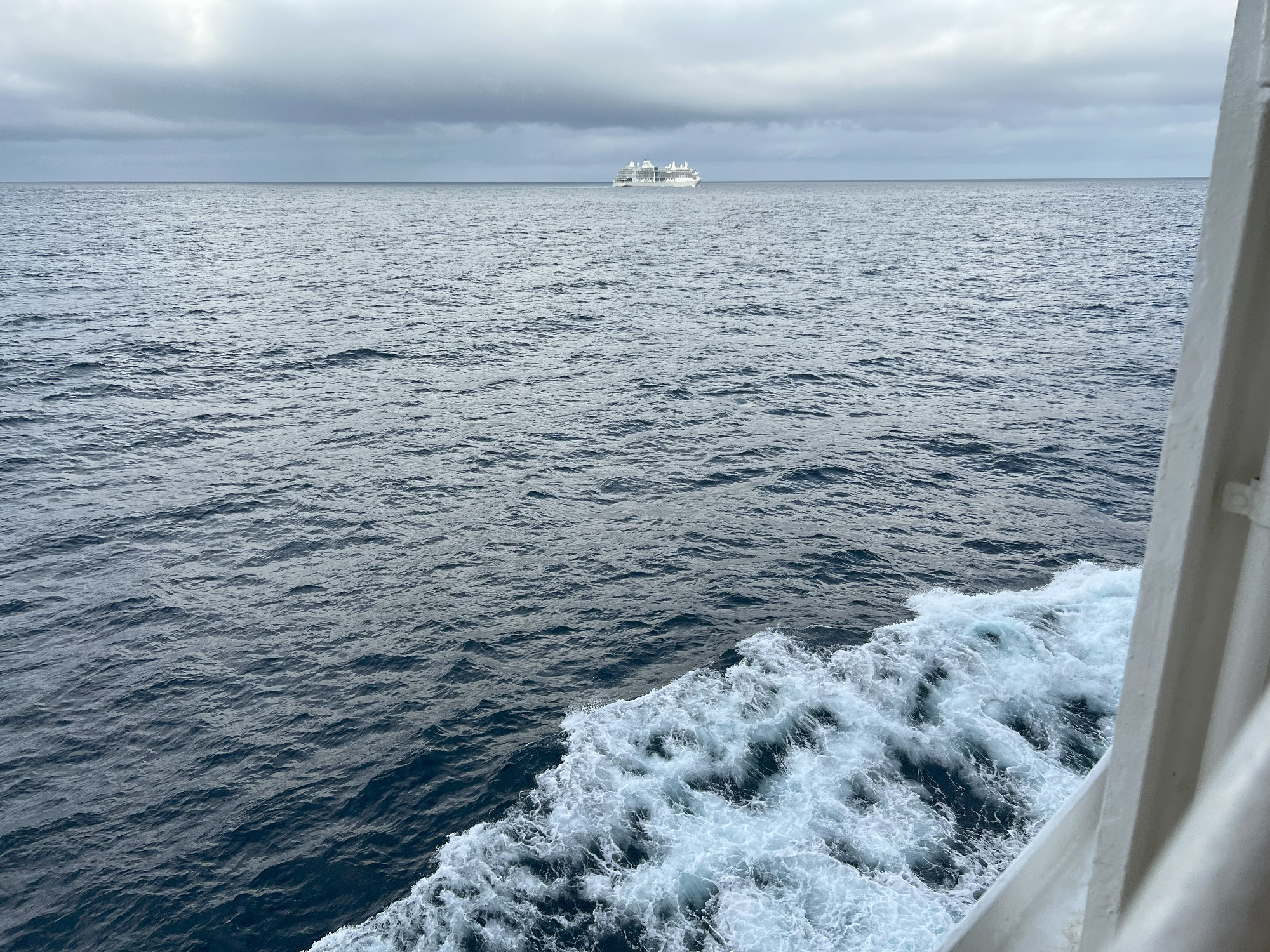 The Norwegian Sun continued her journey along the Peruvian coast towards Chile today. That’s the Silver Nova from the Silversea luxury cruise line out at sea with us.