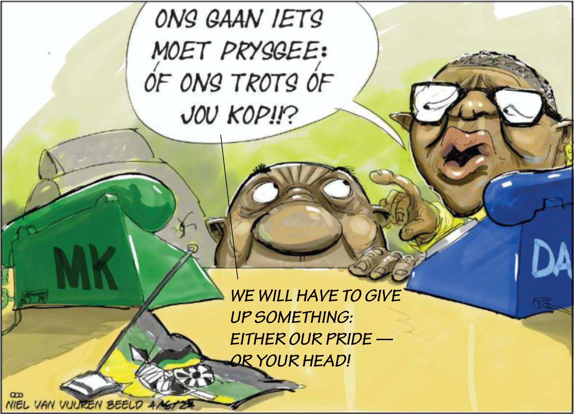 [Cartoon by Niel van Vuuren in South Africa’s Beeld newspaper]