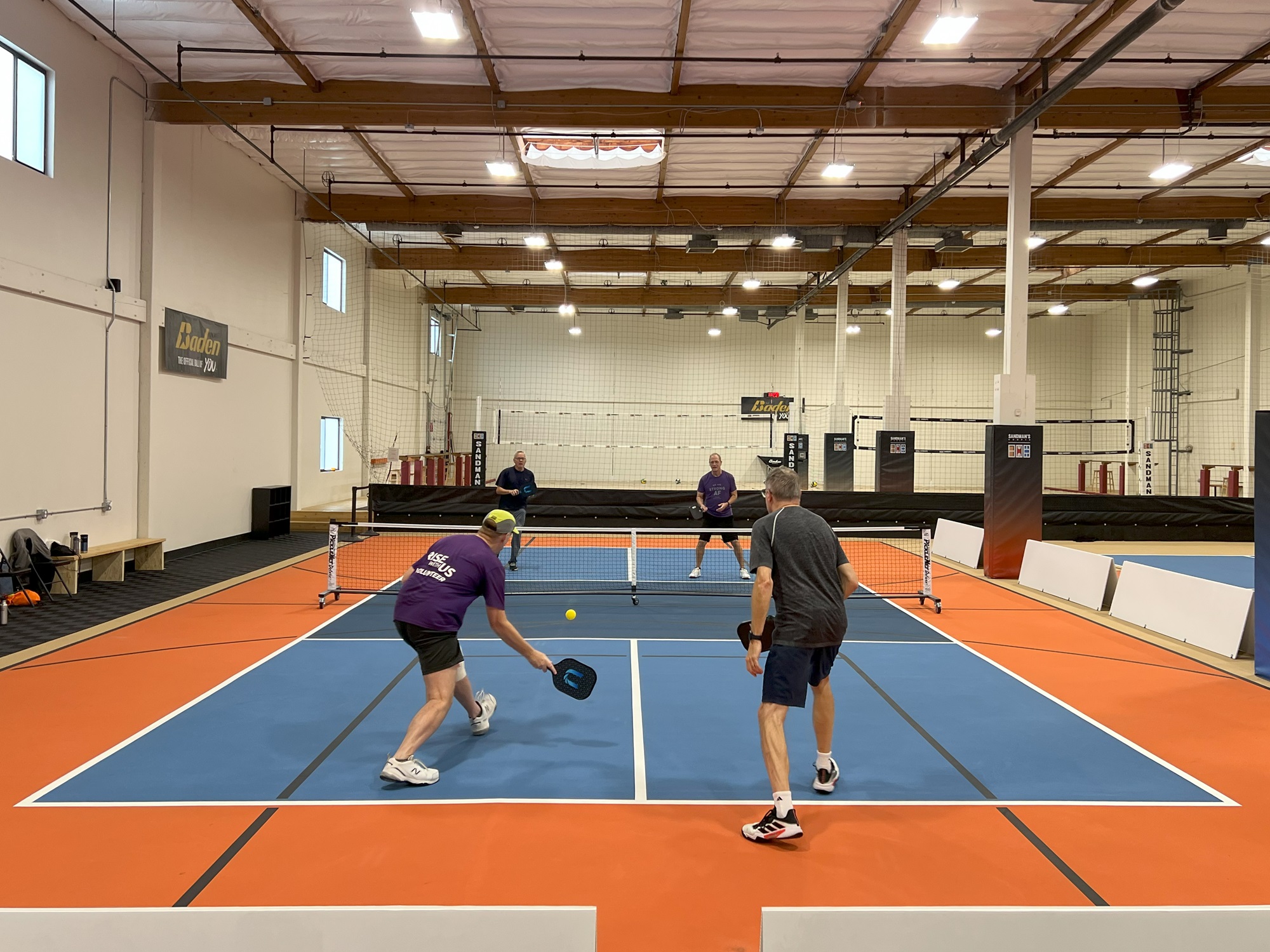 It was raining on and off all day, and we went to Sandman’s Courts in Columbia City to play pickleball.