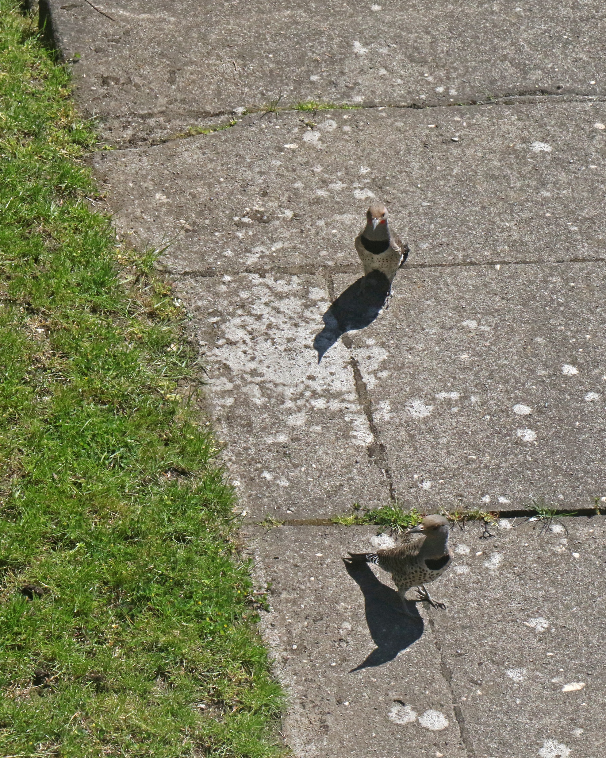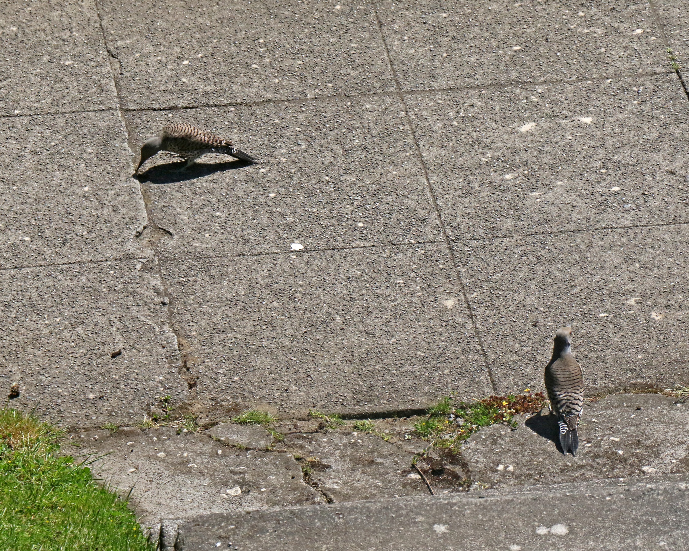 Posted on May 9, 2025 by WillemFriday/ the woodpeckers visit 🪵 Happy Friday. Mr. and Mrs. Woodpecker* came by today. They were looking for ants in the cracks between the cement pavers on the sidewalk. *They are northern flickers (Colaptes auratus)