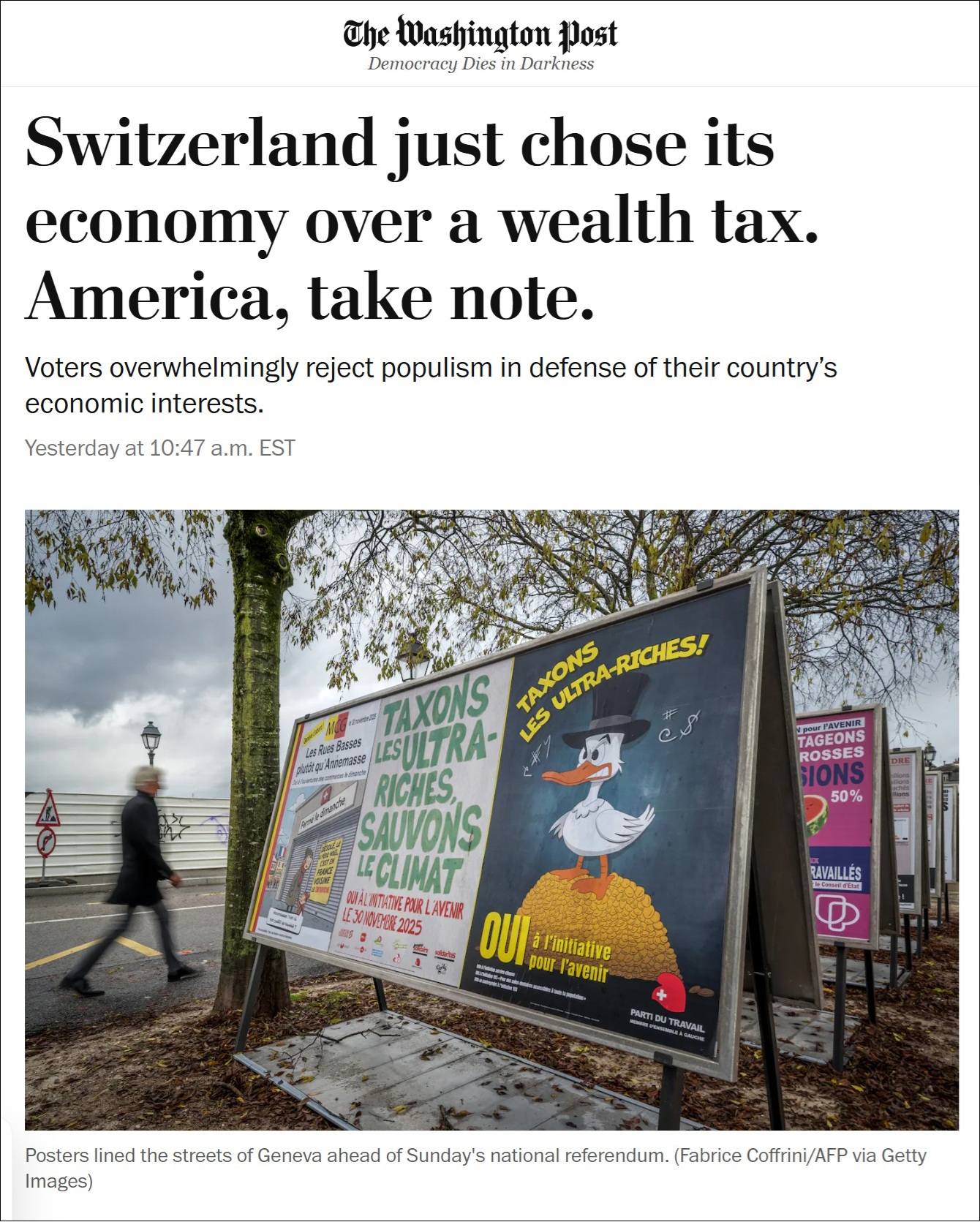 More than 80 percent of Swiss voters rebuffed a referendum that would impose a 50 percent inheritance and gift tax on assets above 50 million Swiss francs, or about $62 million. The Young Socialists party that proposed the new law says the money would be used to fight climate change. Yet it was so resoundingly rejected that it may deter others on the continent from following suit.