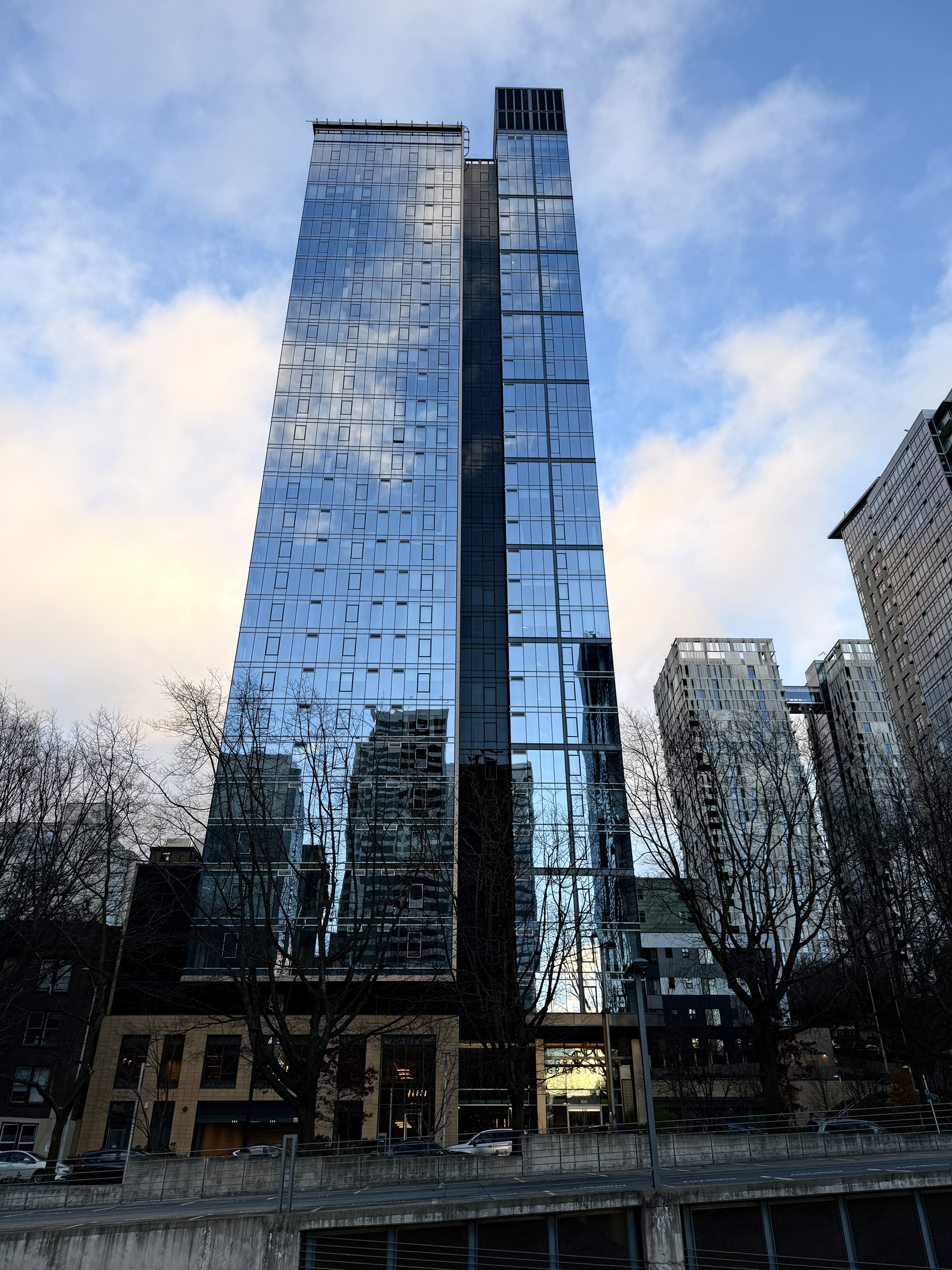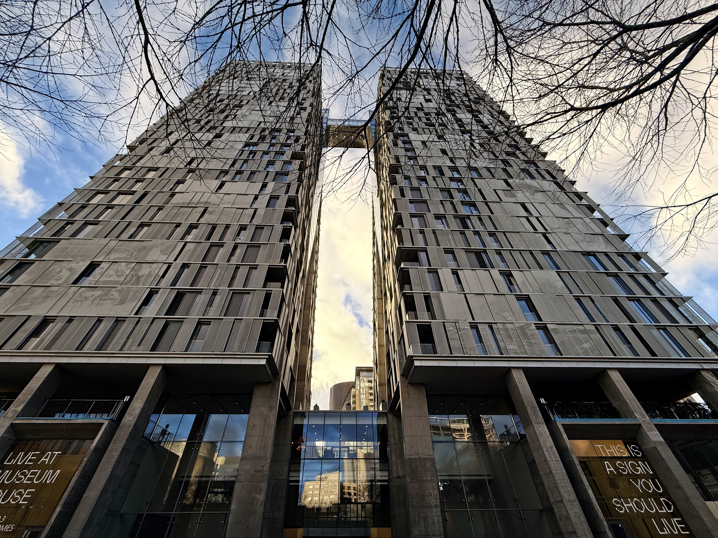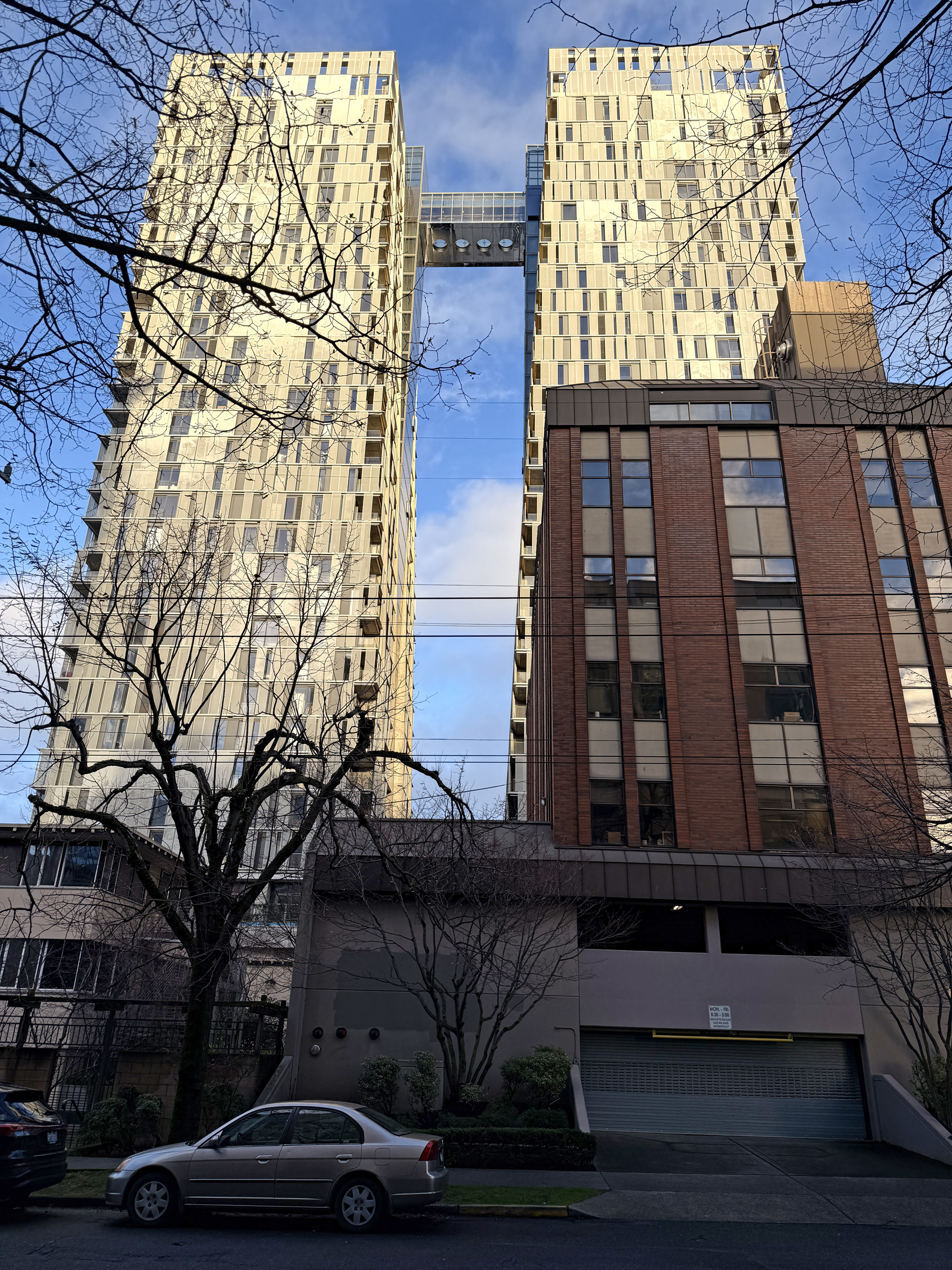 I wanted to take a look at the The Graystone Seattle on Columbia Avenue and the Museum House complex with its twin towers.