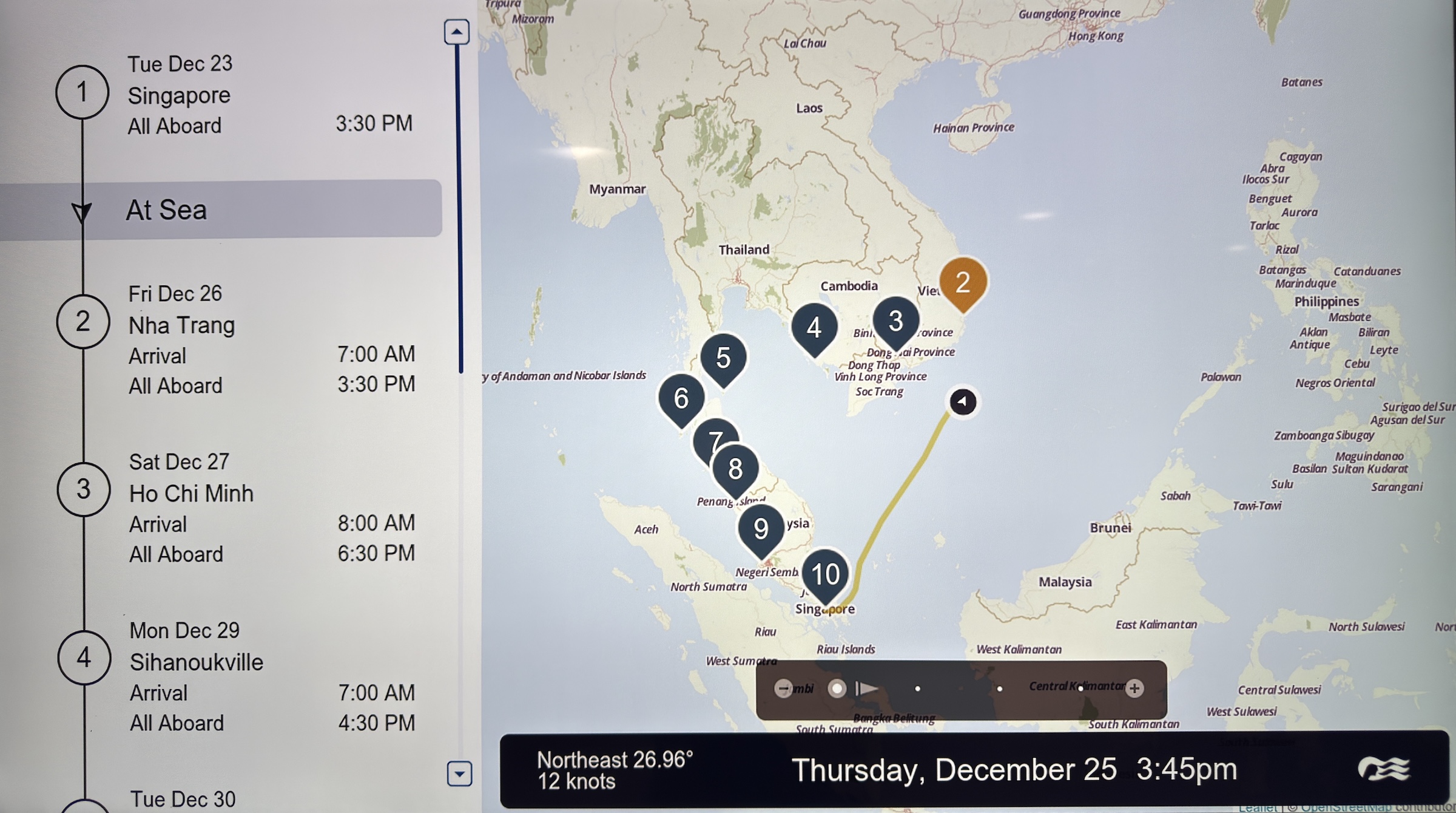 The Diamond Princess was still plying her way through the waters of the South China Sea towards the port of Cam Ranh today.
