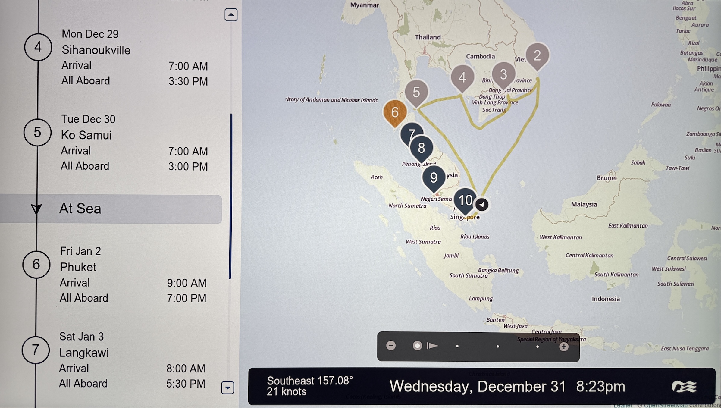 The Diamond Princess is making her way back to the Singapore Strait, to reach the island of Phuket on the west side of the Malay Peninsula by Friday morning.