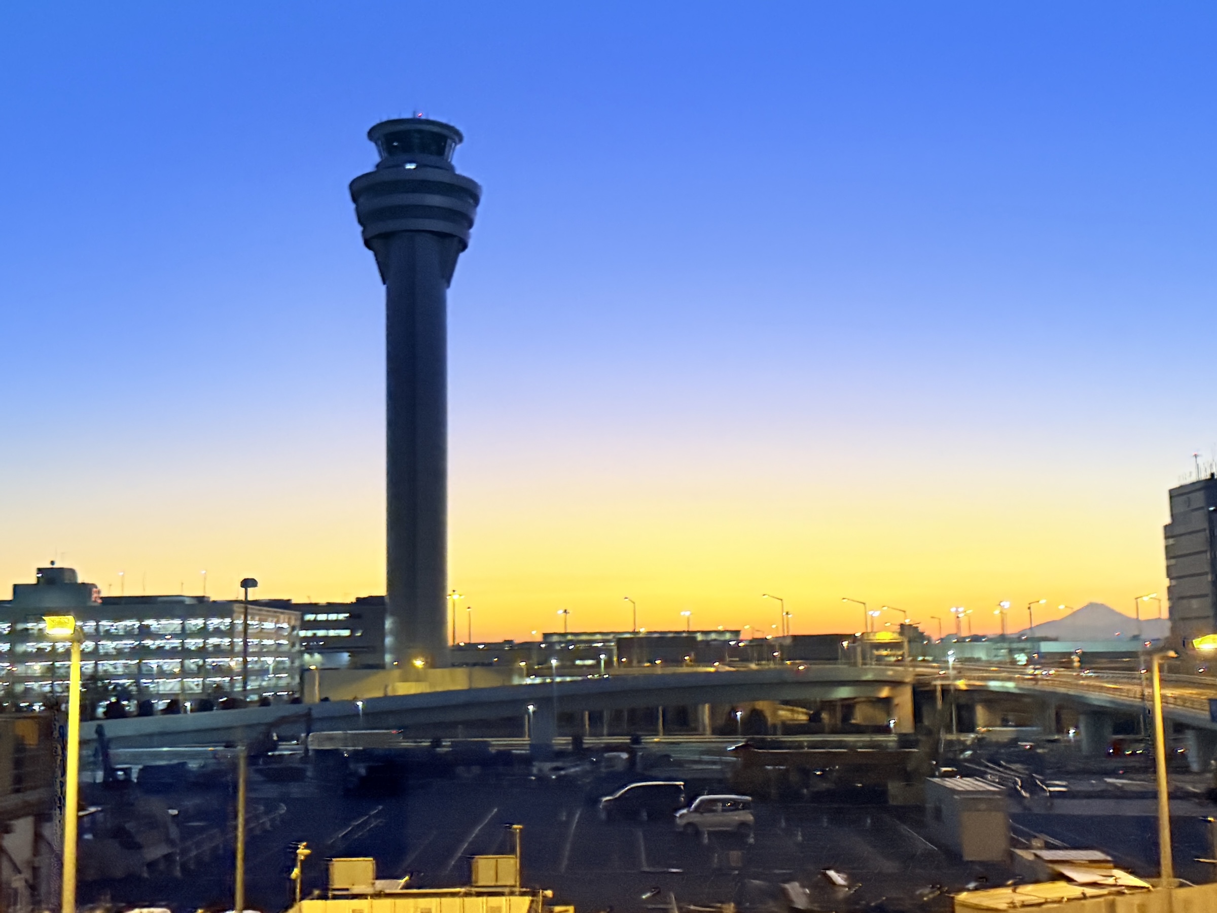 I took the picture of the control tower at Haneda airport just before I hopped off the bus. That might just be Mt Fuji in the distance, in the bottom right corner of the picture.