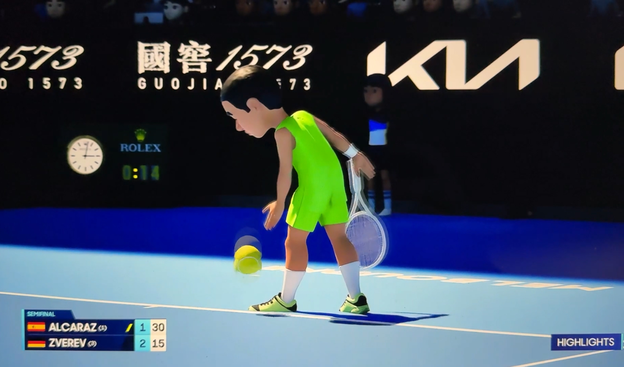 P.S. There are AI-animated versions of the matches posted on espn.com in addition to the real ones. Why? Just for fun, I guess. Alcaraz is in green.