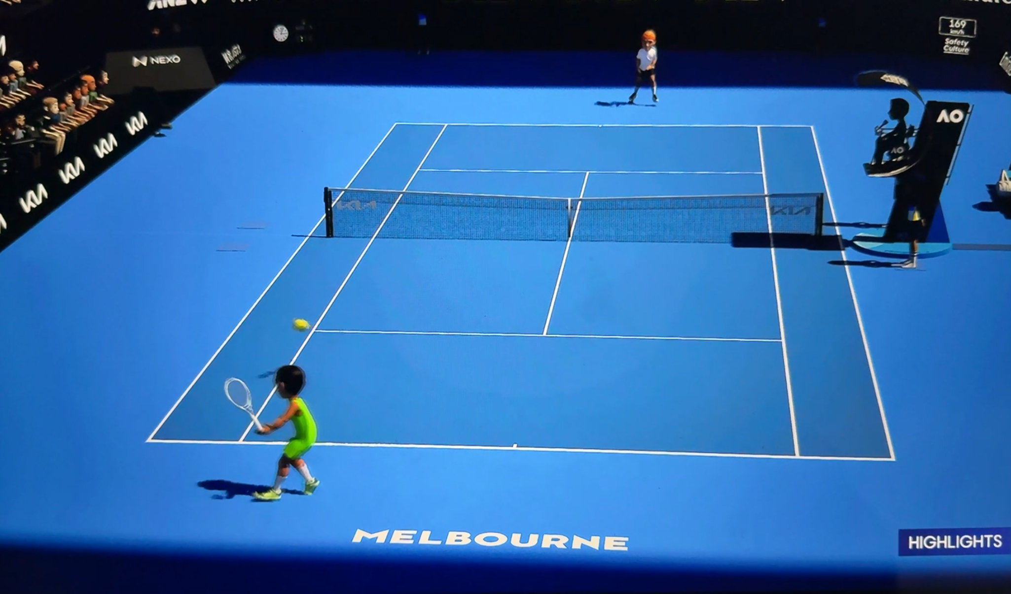 The animated players play with an oversized tennis ball. The AI engine is still a work-in-progress when it comes to the finer detail, though— such as showing the hands of the players gripping the racquets.