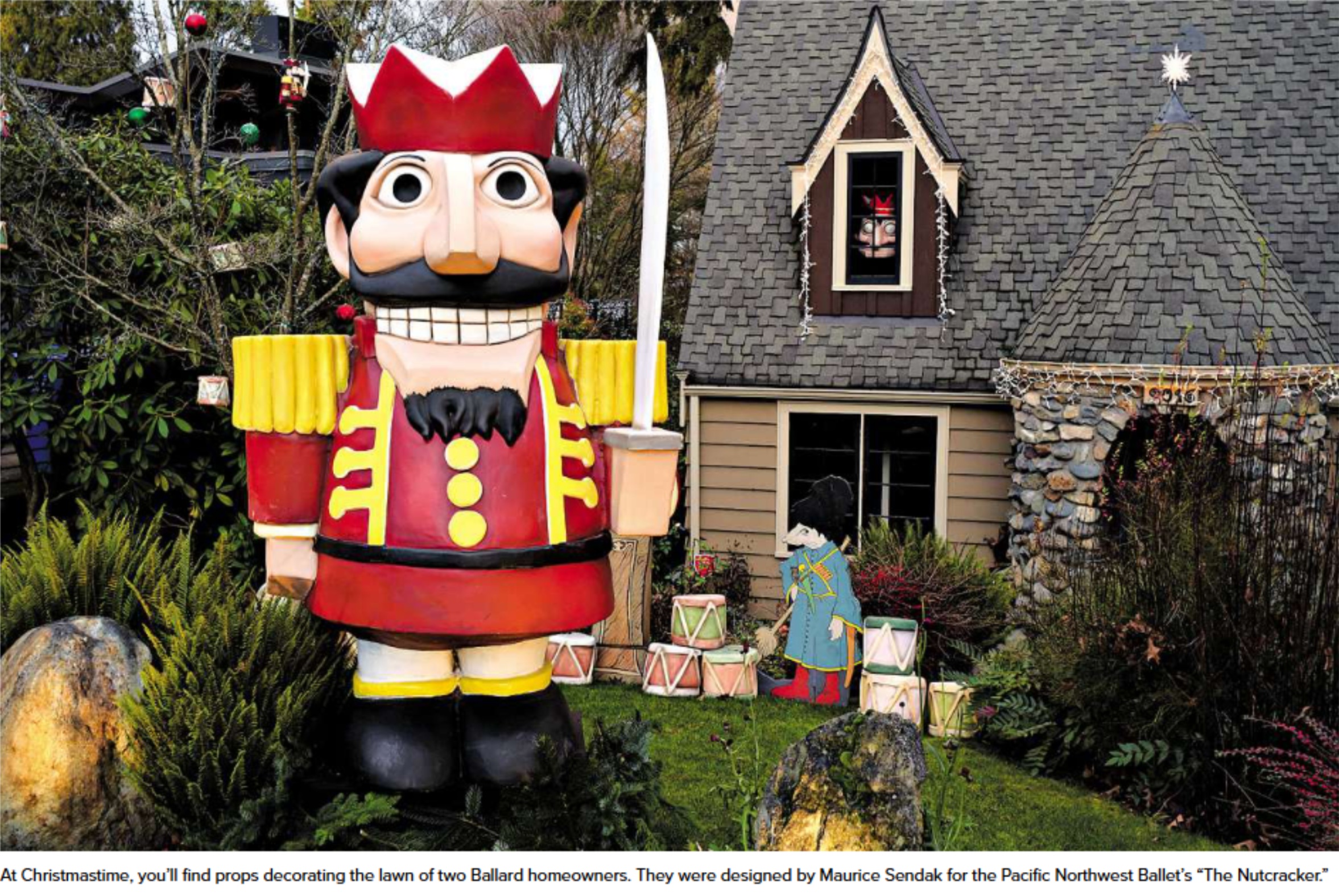 It’s the 11th year John Carrington and Scott McElhose have displayed the Sendak Nutcracker at their home, on the corner of Golden Garden Drive and Loyal Avenue Northwest in Ballard.