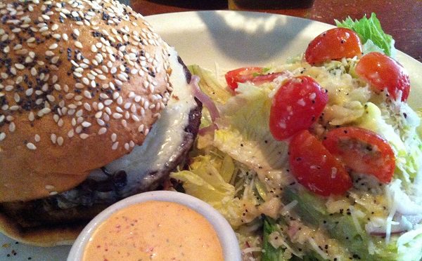 Coastal Kitchen’s ‘Black Jack’ (black bean) burger is not bad at all, but not quire as good as the veggie burgers they serve up at The Elysian (our regular Friday night place).Coastal Kitchen specializes in seafood and oysters. (The web page is http://coastalkitchenseattle.com/).