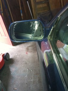 driver side of my venerable 1996 Toyota Camry Driving Machine). Well, it really wasn’t my fault .. I had the car parked flush to the curb while I was at dinner on Friday night. When we arrived back at the car, I noticed the damage. The perpetrator left a note and a phone number on the windshield, though, explaining that she clipped the mirror while driving, and damaging it. (Which I really appreciated. It makes a big difference knowing it was an accident and the person is owning up to it, as opposed to me thinking it was a random act of vandalism). She will send me a check for the damage. The Toyota garage is ordering a new mirror and housing. There are only two such mirrors with metallic blue housings left in the country, said the spare parts guy. Which makes me wonder what I would have done if there had been none. The options would have been 1. Pick another color. (Maybe); 2. Go hunt in scrap yards for blue 1996 Toyota Camrys. (No); 3. Do nothing. (No); 4. Use it as an excuse to get a new car? The straw that broke the camel’s back. (Maybe!).