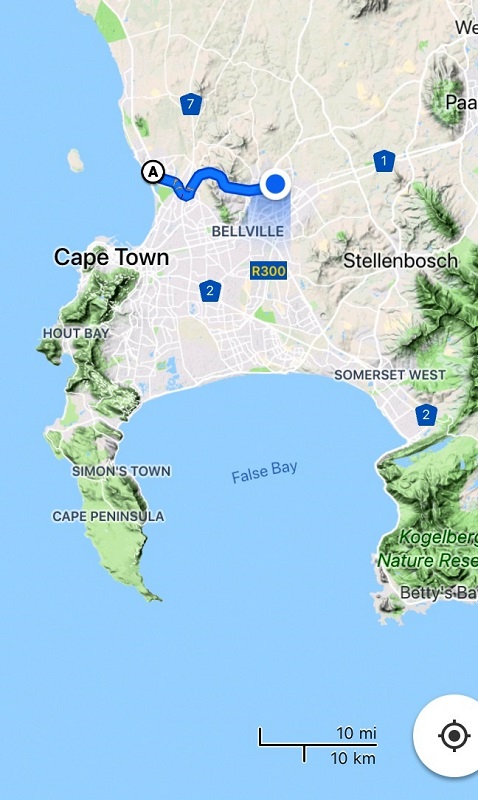 I took a short drive out this afternoon to Bloubergstrand (‘Blue Mountain Beach’). From there, one sees the iconic view of Table Mountain (looking blue in the distance).
