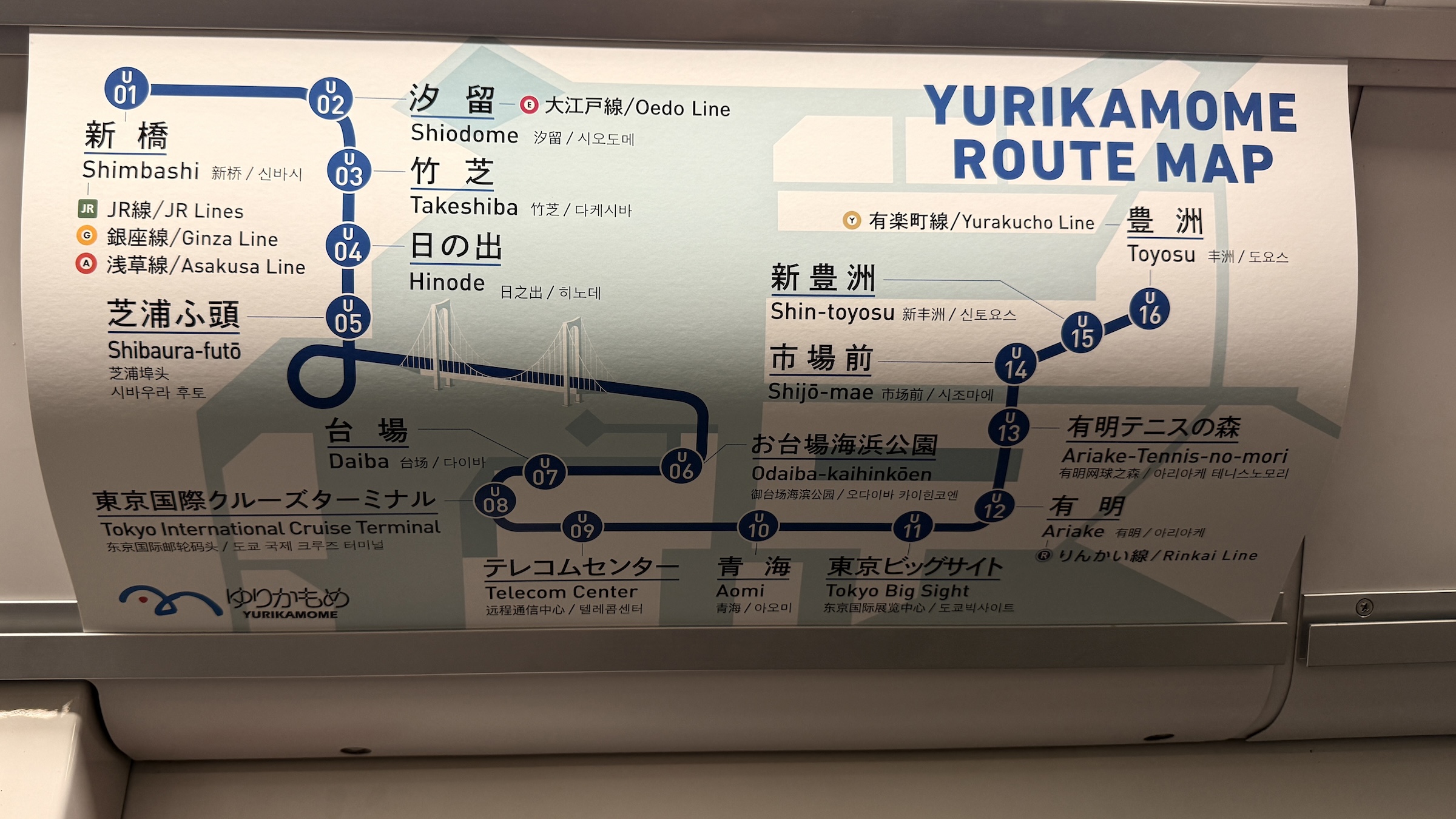 I had time today to squeeze in one more train ride, on the Yurikamome Line.